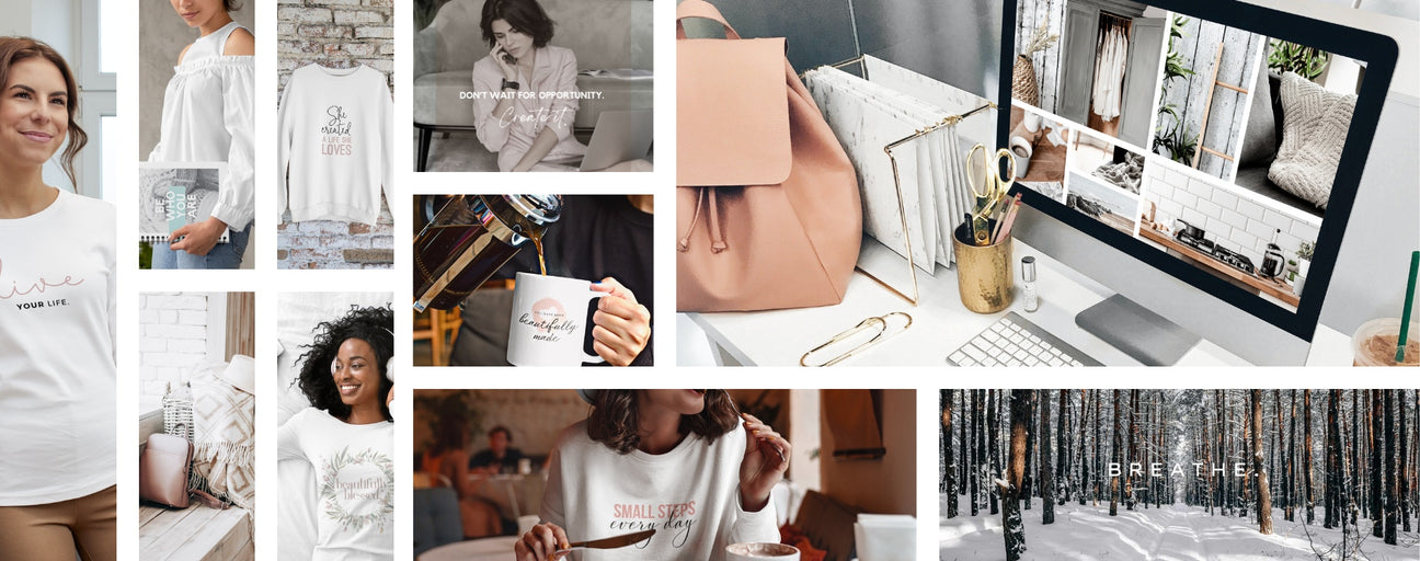 We create custom-designed desktop & mobile backgrounds (we like to call them "digital vision boards") for women entrepreneurs, to add encouragement and beauty to their workspace. A new collection arrives every season, so comeback as the seasons change to see our newest collections. We can't wait to share them with you! Click below to see our current collection, The Vera Spring Collection!